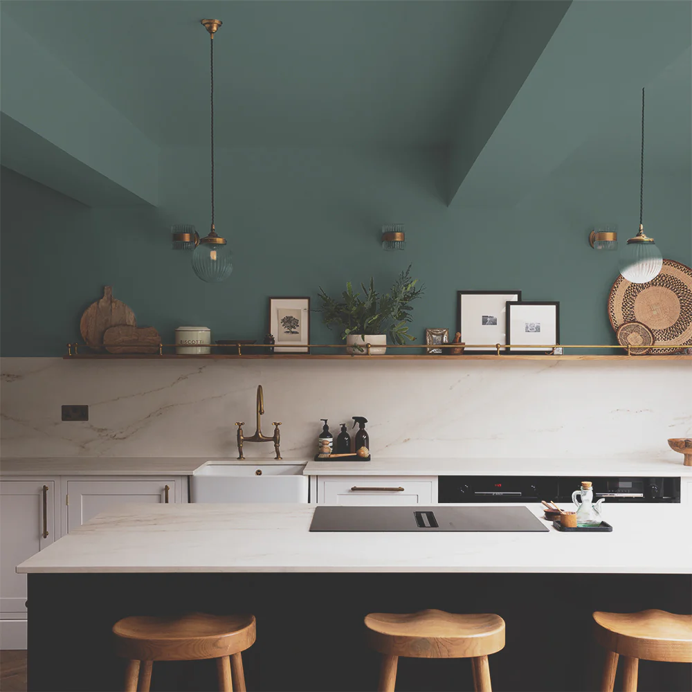 Warm grey teal, it's strong with a big mortgage to pay. If you're looking for a deep grey, green or blue that works in any space - you found it.