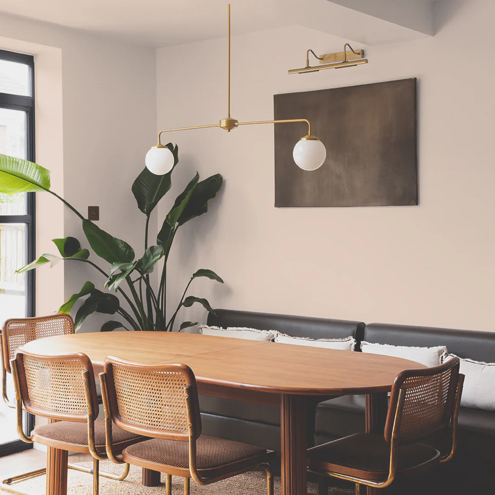 A rich beige pink, slightly greyed. An assured warm, modern neutral with a plaster look - it works well combined with taupes, reds or browns.