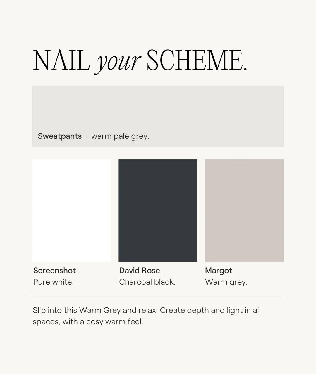 Slip into this warm pale grey and relax. Create depth and light in all spaces, with a cosy and refined feel.