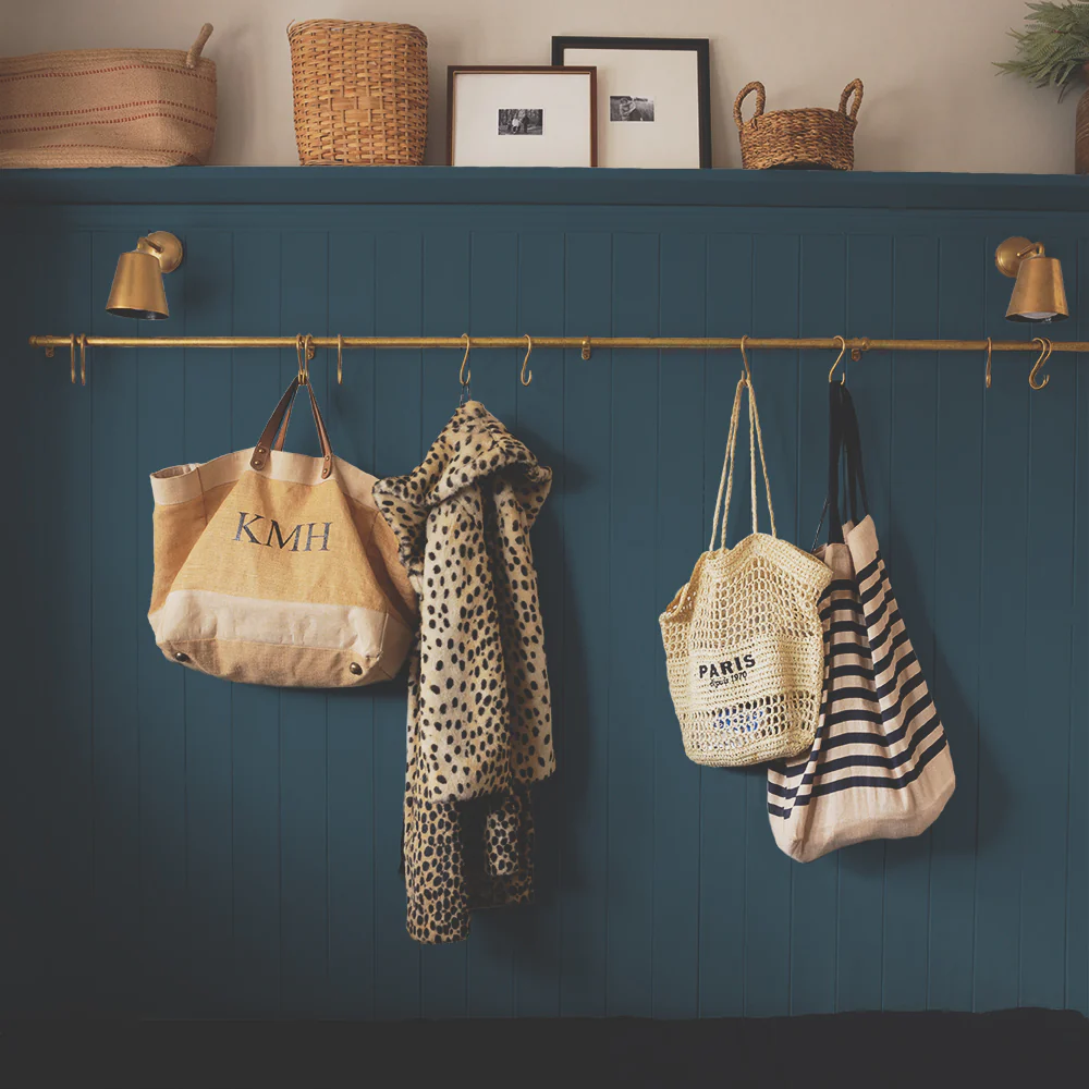 Deep teal, with a touch of green - it's like the sea at midnight. It's a stunning marine colour that works easily in all lighting conditions.